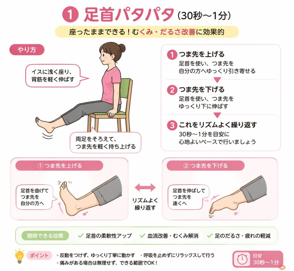 ① 足首パタパタ(30秒〜1分)