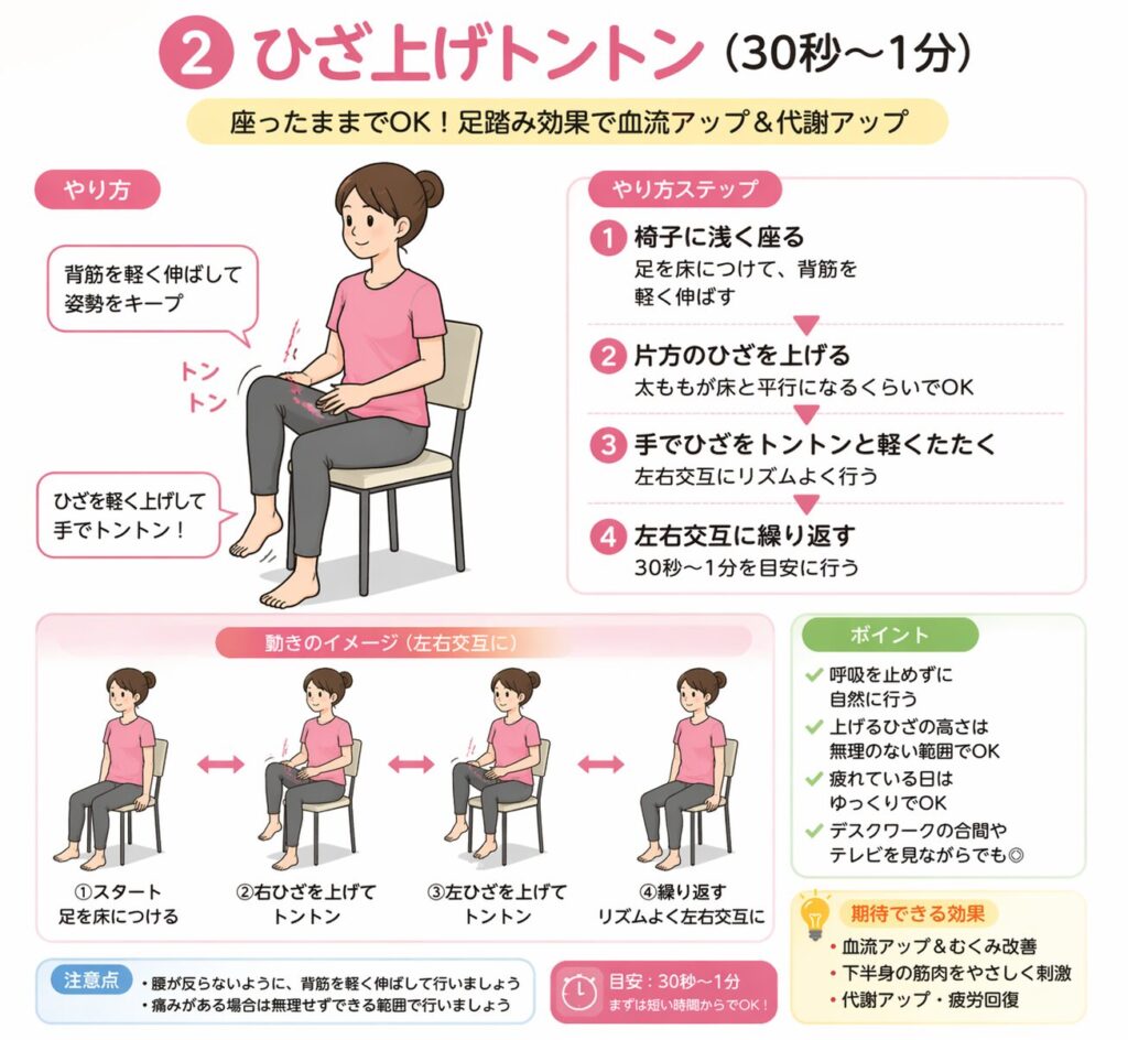 ② ひざ上げトントン(30秒〜1分)