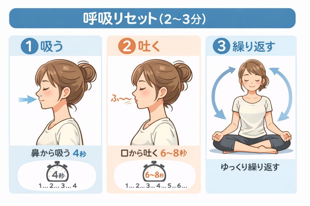 ✔ STEP① 呼吸リセット(2〜3分)