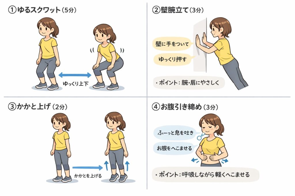 ・ゆるスクワット(3分)