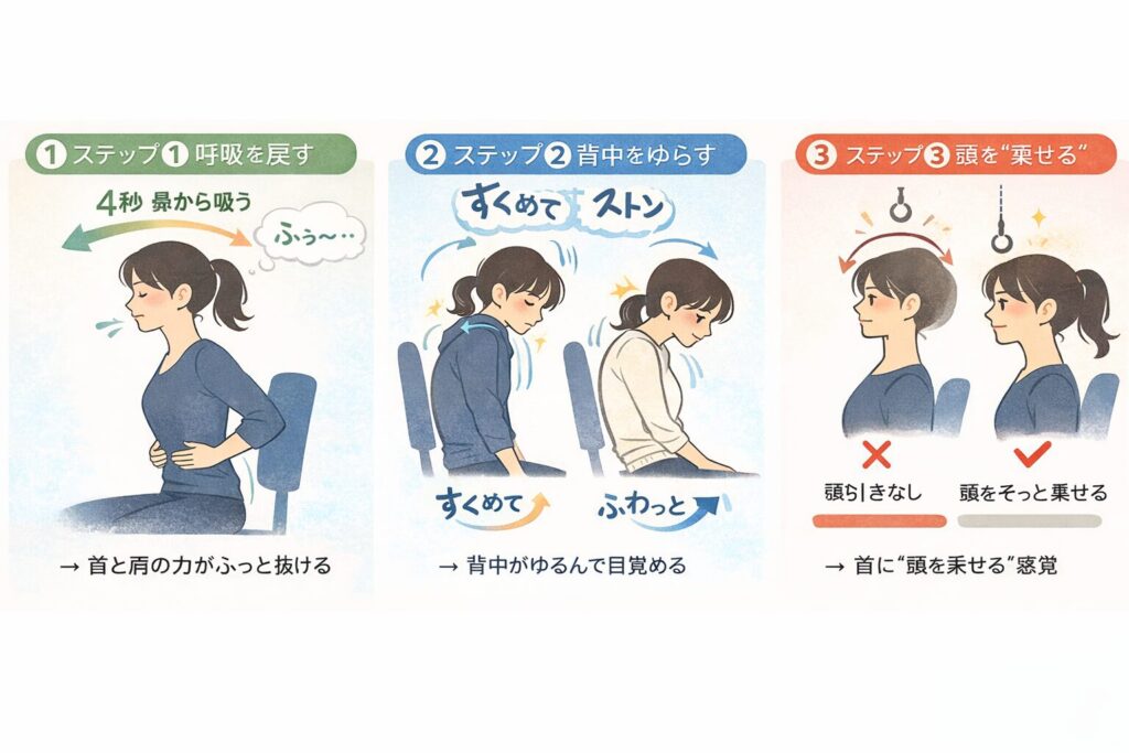 首は「前に出たまま」が癖になります。
