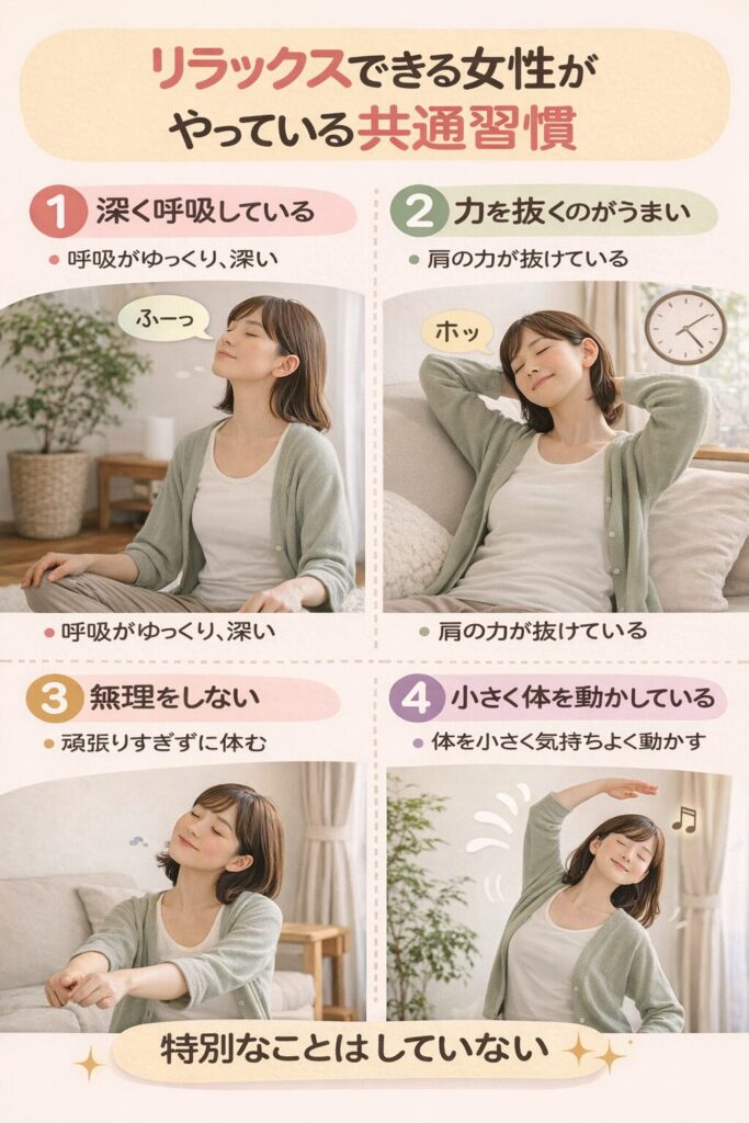 リラックスできない女性は、実は「何もしていないのに疲れる」状態に入りやすいです。