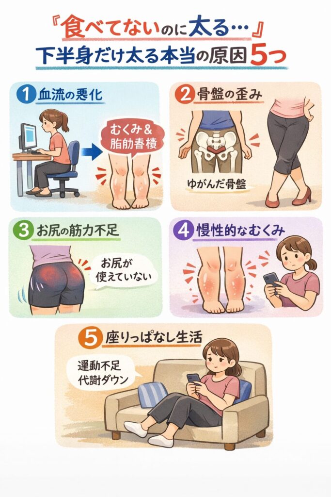「そんなに食べてないのに、なんで下半身だけ太るの…?」
