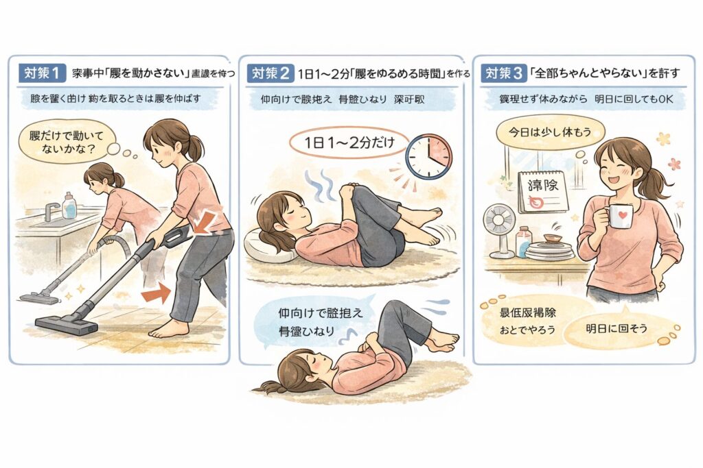 家事をするだけで腰にダメージが蓄積します。