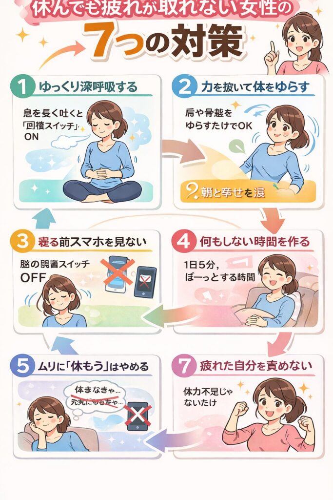 休んでも疲れが取れない女性の7つの対策
