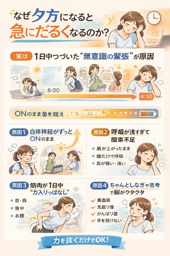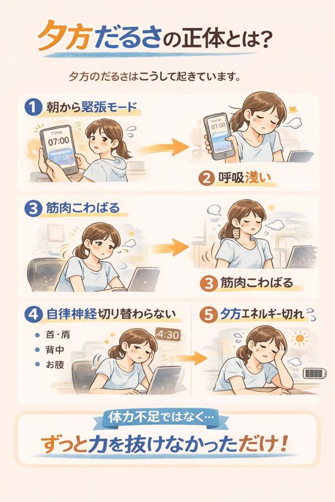 実はこの「夕方まで緊張が抜けない体」、