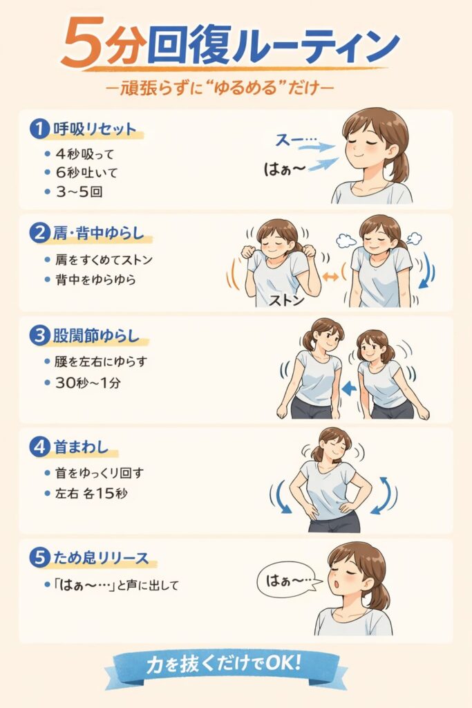 5分、呼吸とゆらしで、