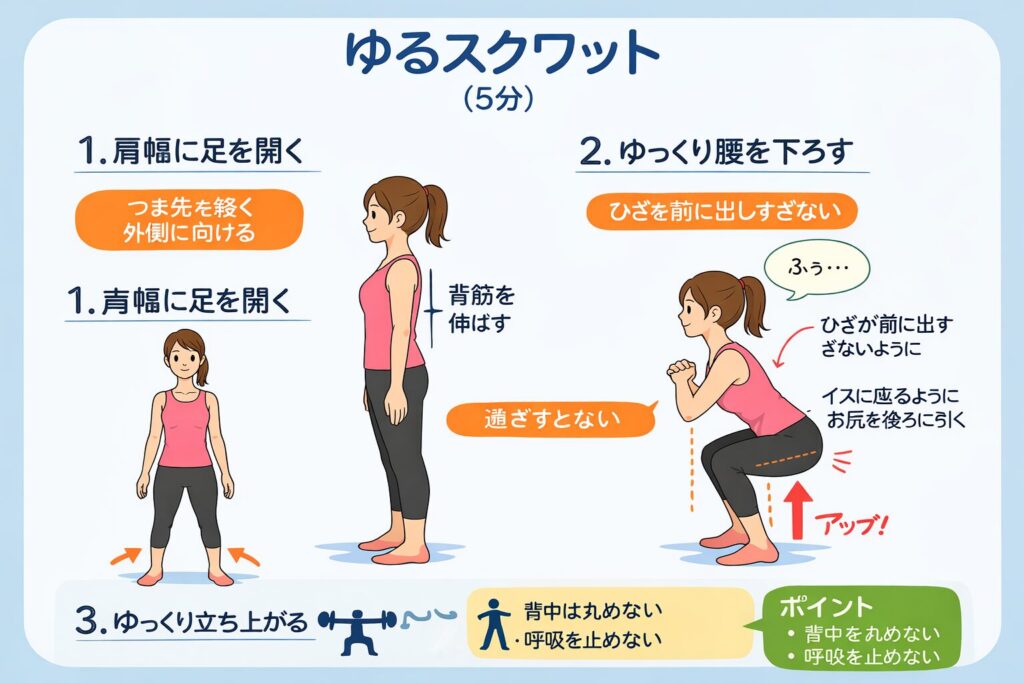 ④ゆるスクワット(3分)