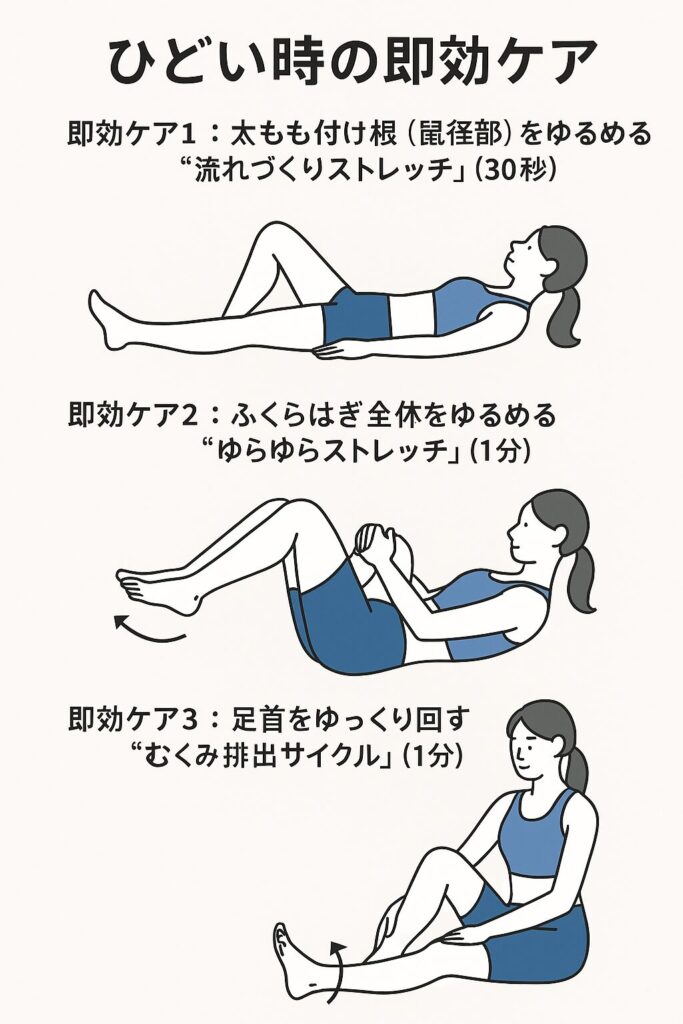 むくみがひどい日でも 5〜10分でスッと軽くなる ことが多いのです。