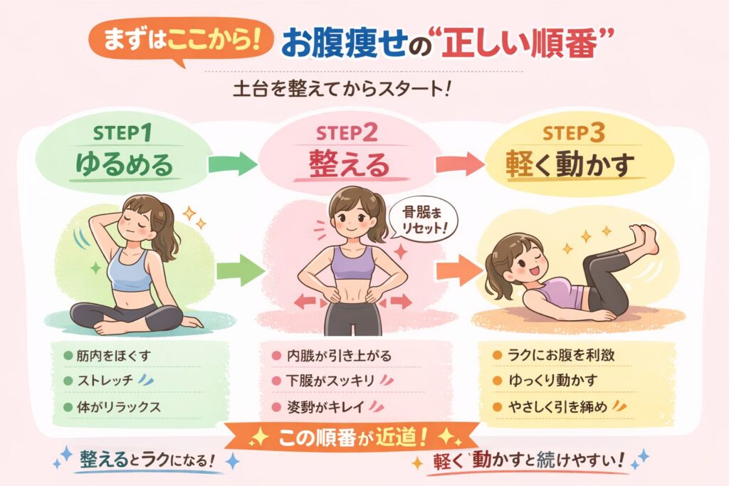 お腹を引き締める最短ルートは、いきなり鍛えず「体を整えてから動かす」ことです。