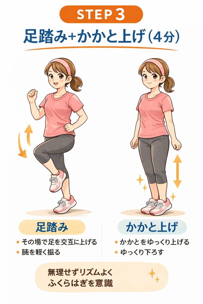 第7章|STEP③ 足踏み+かかと上げ(4分)|ここで初めて“燃える体”になる