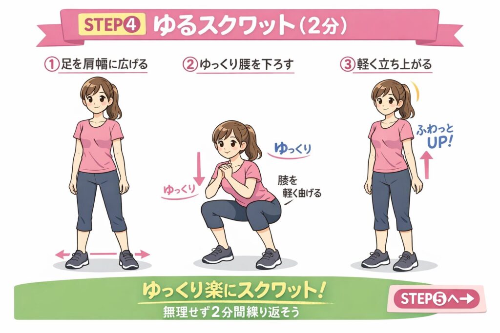 第8章|STEP④ ゆるスクワット(2分)|“少しだけ頑張る”が一番効く