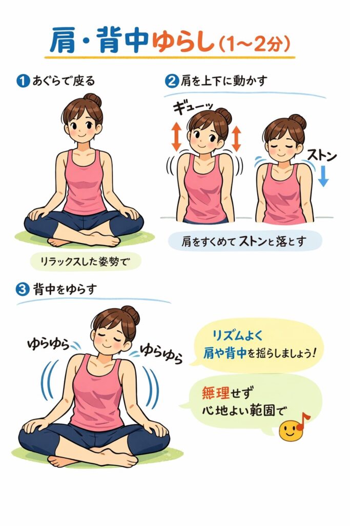 力を抜いて、気持ちいい範囲で揺らすだけでOK。