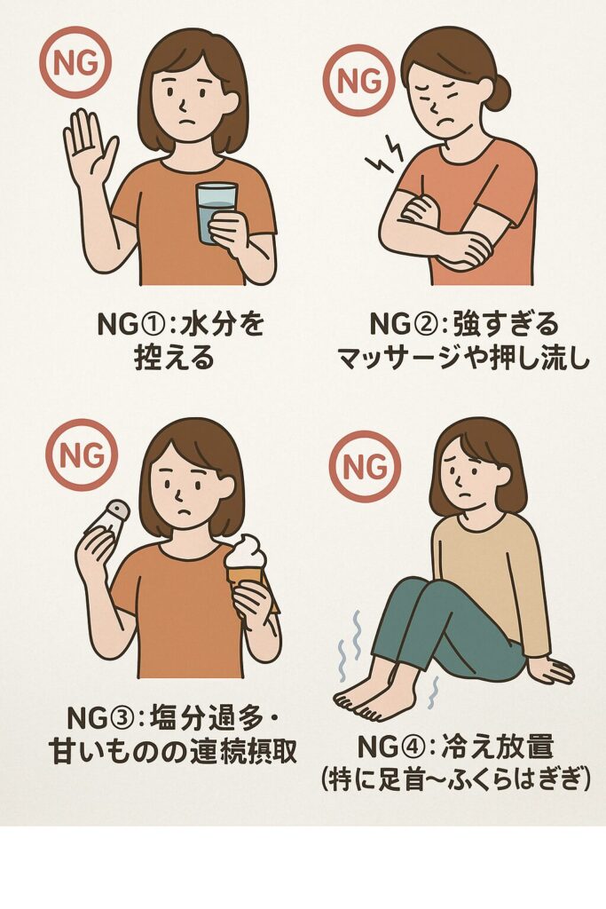 → 股関節や骨盤周りが固まり、水分が“下半身に溜まる悪循環”