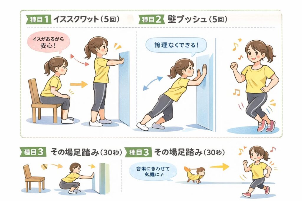 嫌になりにくく、効果が出やすい3種目 を紹介します。