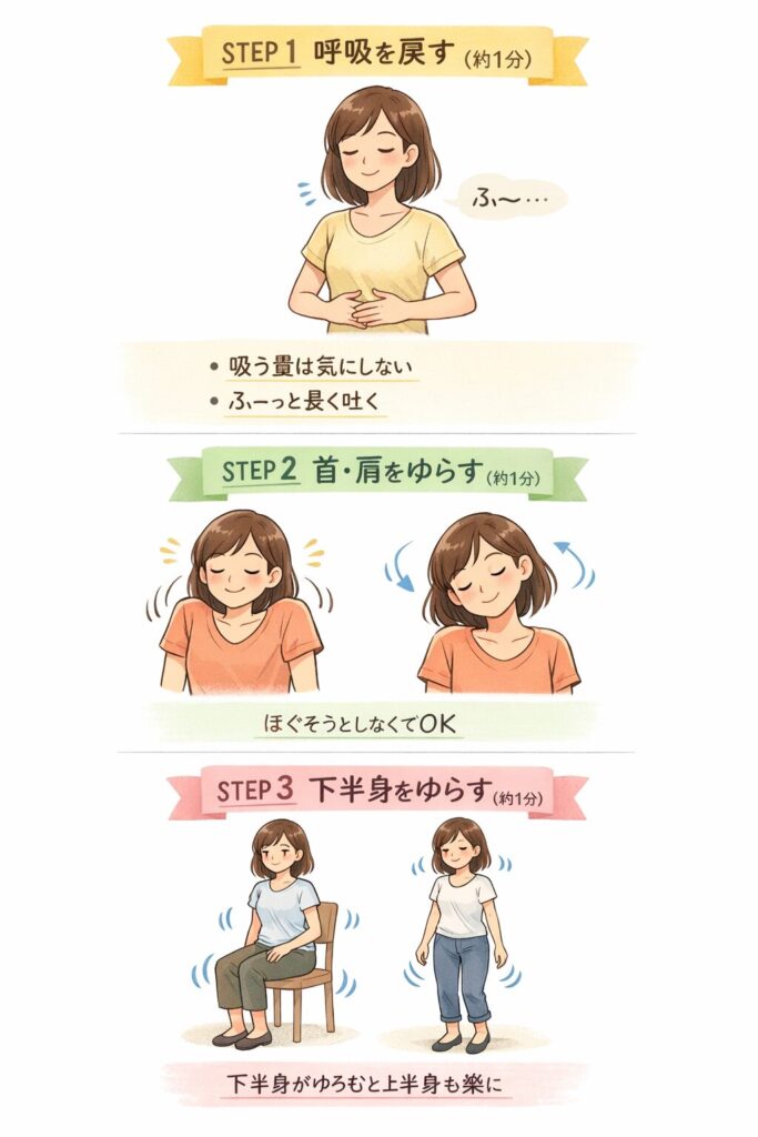「ちゃんとしなきゃ」「迷惑をかけちゃいけない」場面が多い女性ほど、体が先回りして緊張する のです。