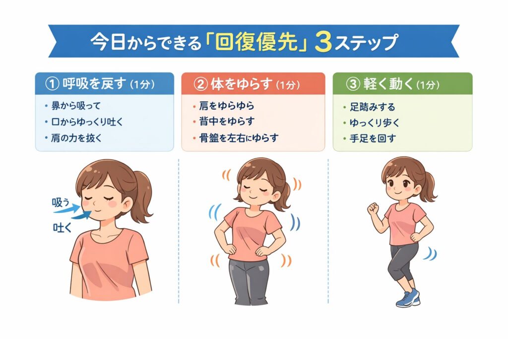 ③ 最後に“軽く動く”理由:回復の仕上げは「動ける感覚」だから