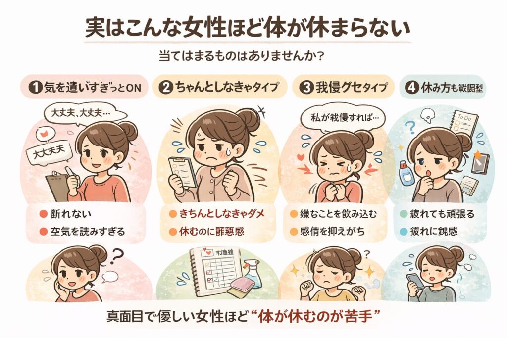 頑張りすぎる女性は、体が「休み方」を忘れている状態です。
