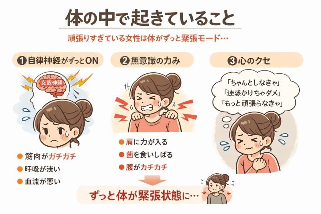 こういう人は、表面上は穏やかでも、体の中ではずっと緊張しています。
