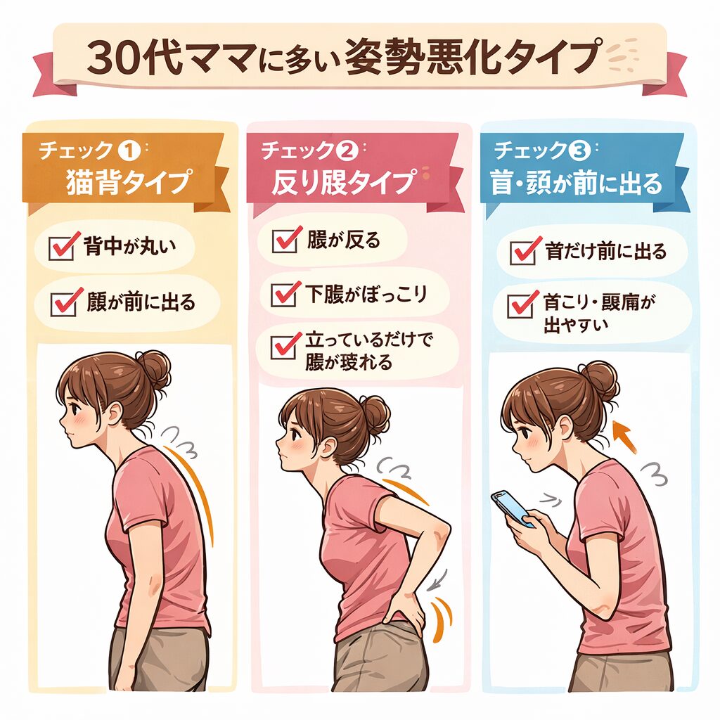 30代ママに多い「姿勢悪化タイプ」チェック