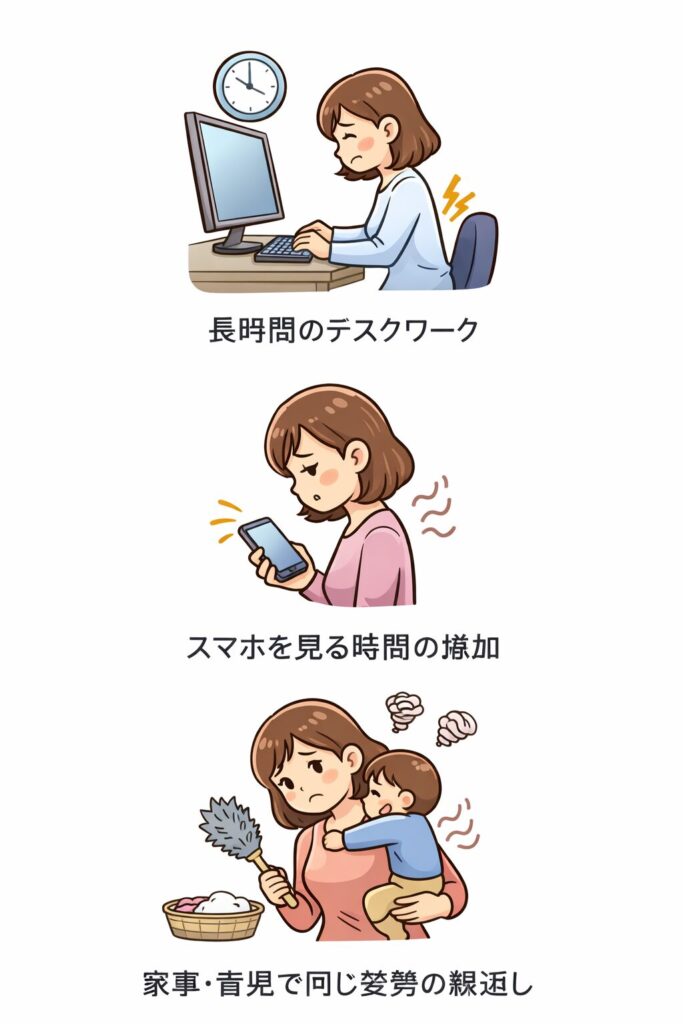 - 家事・育児で同じ姿勢の繰り返し