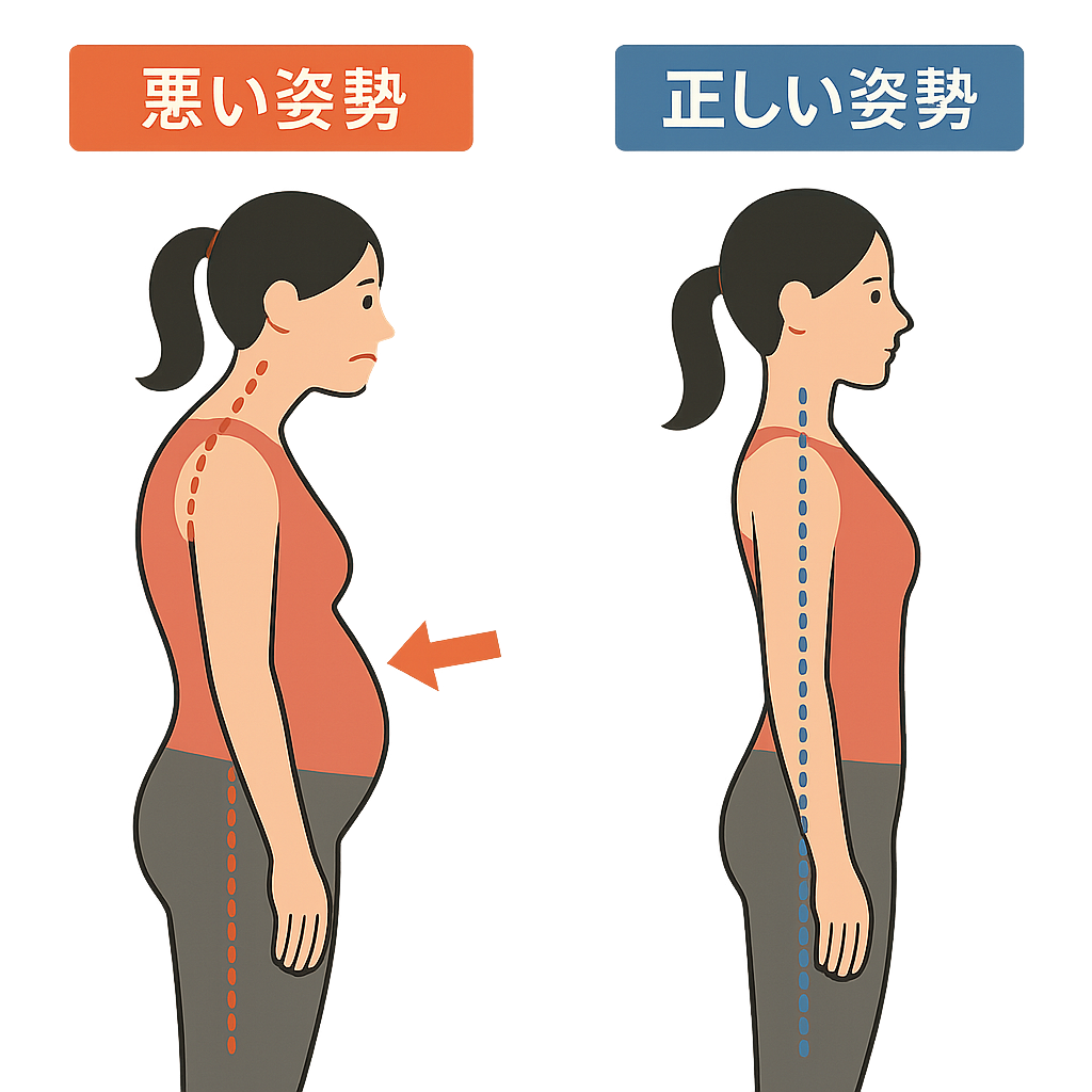 • 反り腰 → 骨盤が前傾して下腹が突き出る